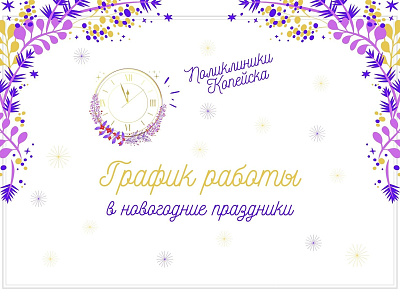 Режим работы поликлиник ГБУЗ «ГБ №1 г. Копейск» в новогодние праздники.