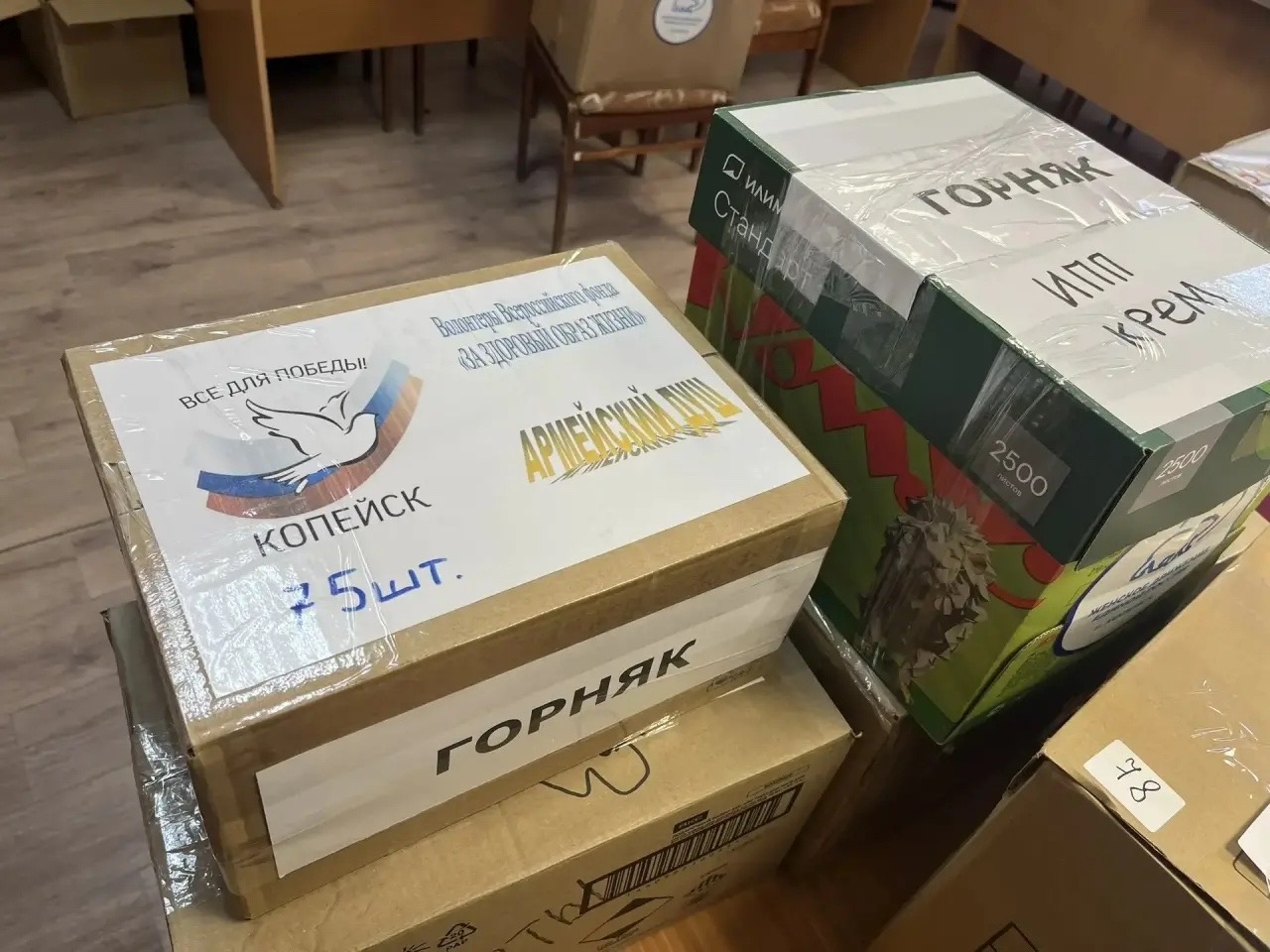 На прошлой неделе из Копейска отправился очередной большегруз с гуманитарной помощью для бойцов СВО и жителей новых регионов страны. В сборе и отправке участвовали администрация города, депутаты, фонд «Братство», предприятия, волонтеры, а также школьники, воспитанники детсадов, педагоги и родители.
