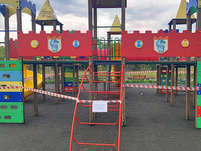 После несчастного случая с ребенком и вмешательства прокуратуры детские площадки и качели в парке Победы «опечатали».