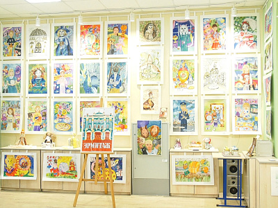 На ней представлены картины и текстильные изделия воспитанников в разных жанрах и техниках.