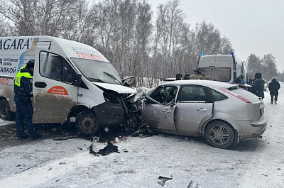 В лобовом столкновении автомобилей пострадала женщина-водитель