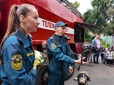 В рамках «Месячника безопасности» сотрудники МЧС проводят открытые уроки для детей. В этот раз спасатели приехали в детский сад №44.