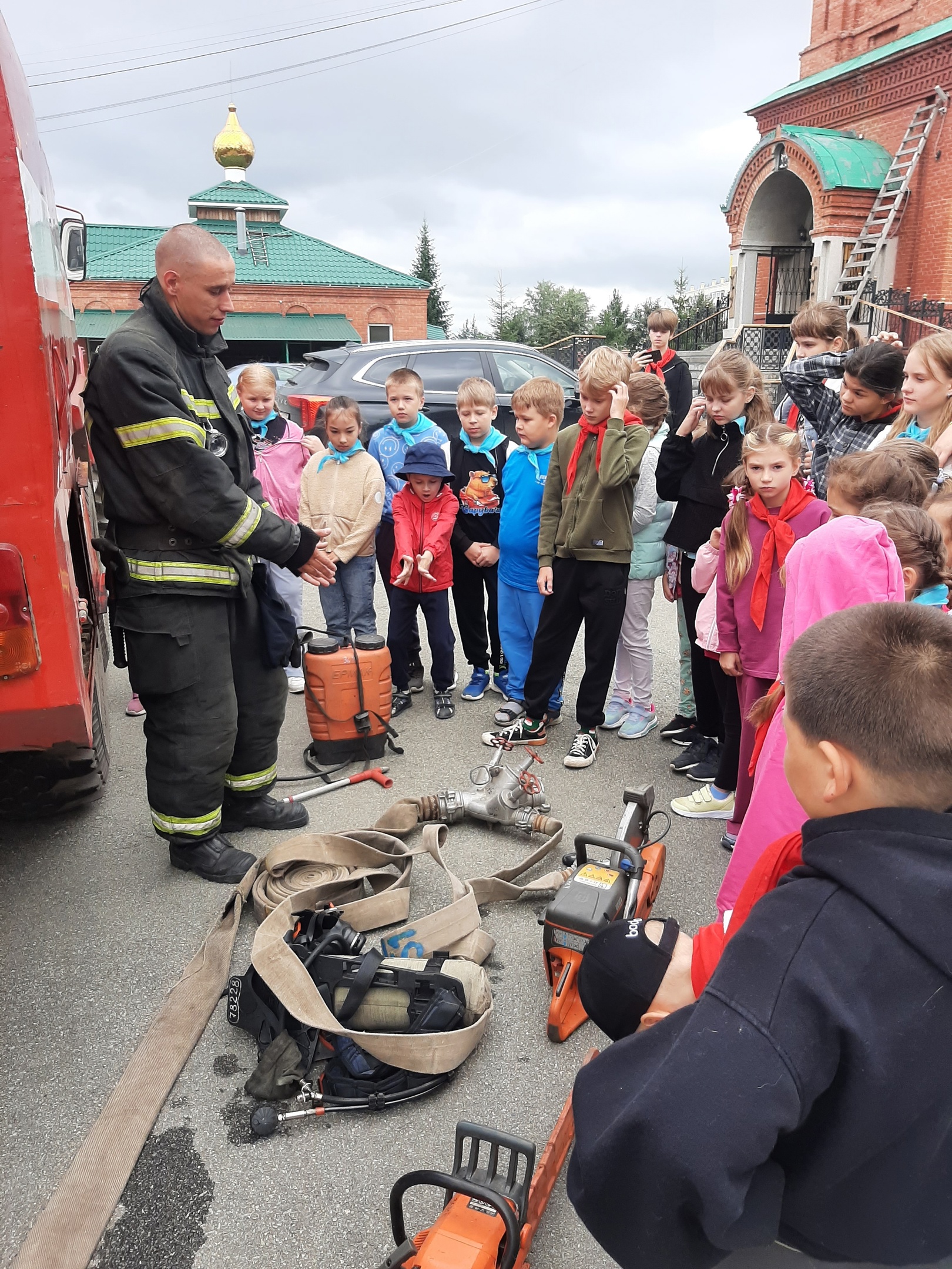 Ежегодно в храме Покрова Пресвятой Богородицы организуется летний лагерь для детей. Там прошла традиционная встреча сотрудников МЧС с детьми.