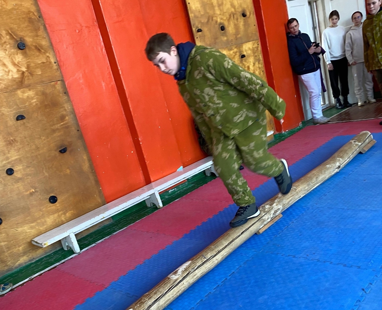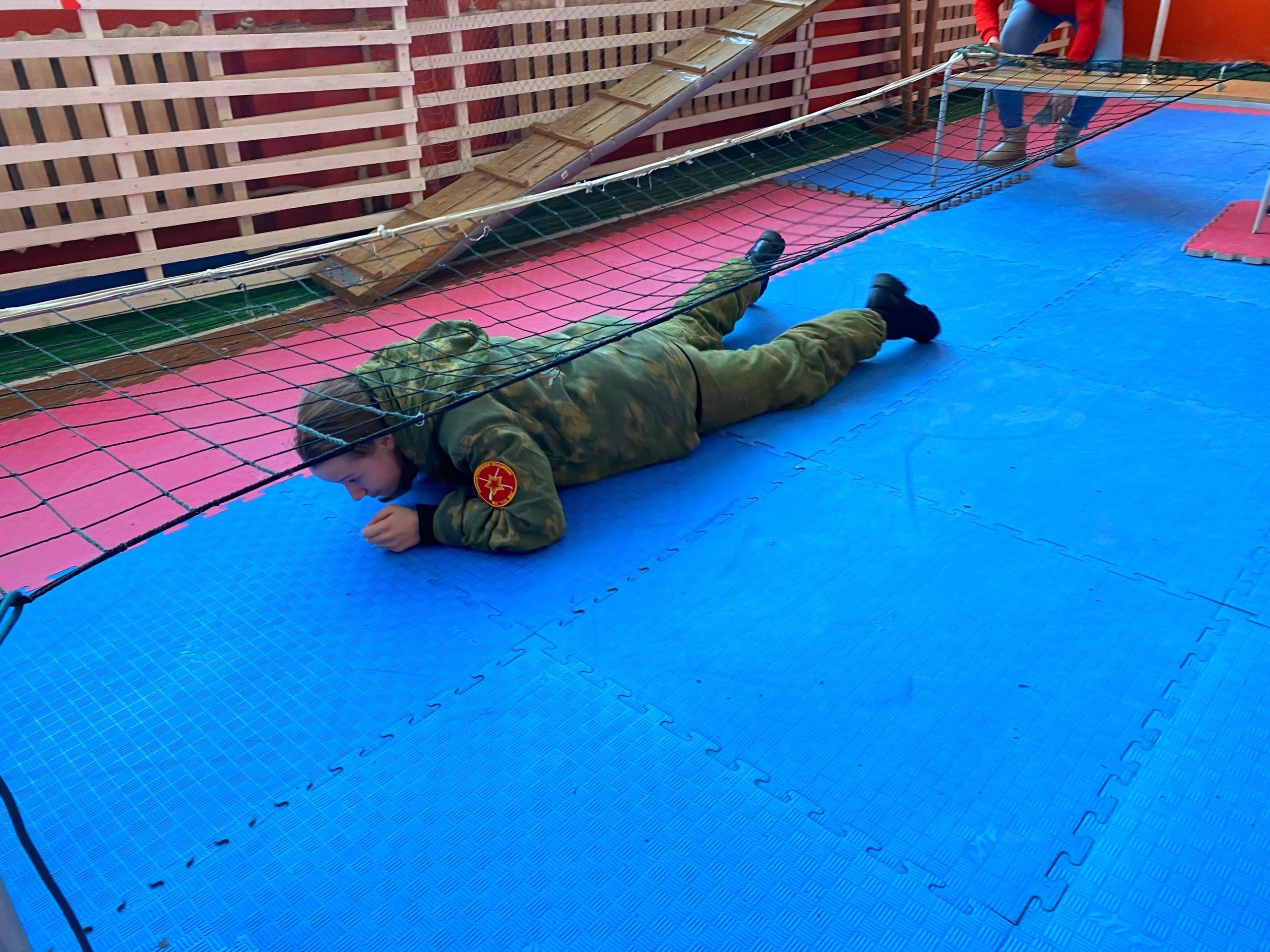 После торжественного построения и сдачи рапортов главному судье, команды разошлись на этапы. Комплексная полоса препятствий располагалась, как внутри помещения школы, так и на улице и включала в себя интересные, разнообразные испытания на ловкость и военную подготовку: «Бревно», «Болото», «Лаз», «Змейка», «Стрельба» (для кадетских классов), «Метание гранаты», «Переноска раненого», «Минер».