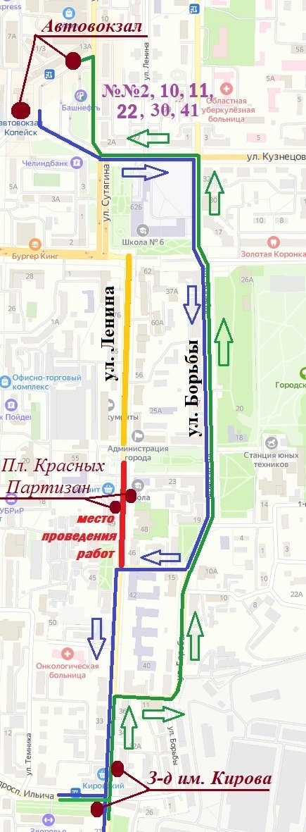 Копейское пассажирское автопредприятие уведомляет, что с 8:00 часов 24 июля движение по муниципальным маршрутам №№ 2, 10, 11, 18К, 22, 30, 41 будет организовано в объезд ул. Ленина по ул. Борьбы в прямом и обратном направлении.