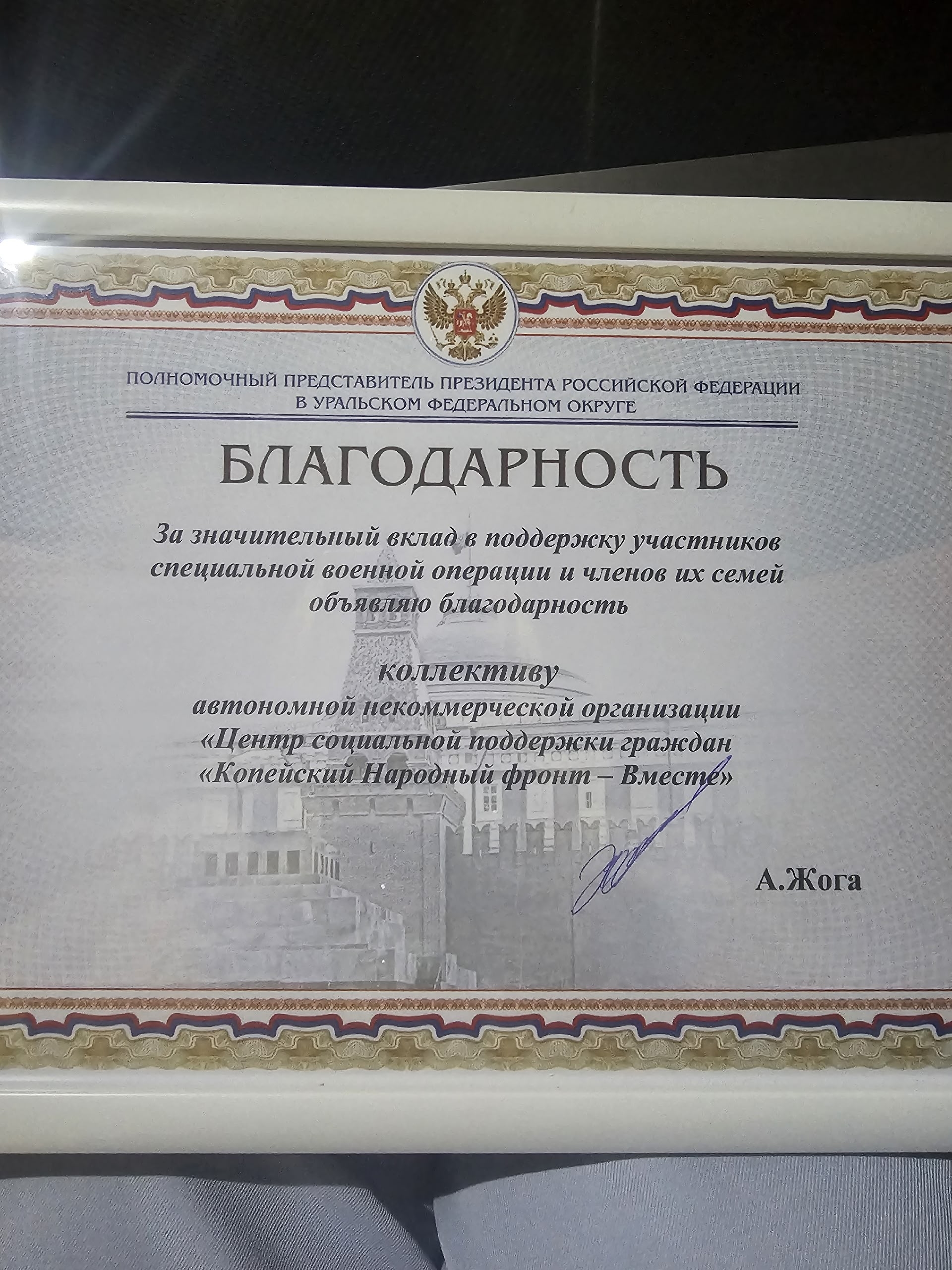 Копейский фонд получил благодарность от полпреда УрФО