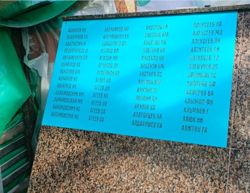 Установлены все гранитные плиты «Книги памяти», а в её центре ведутся работы по нанесению утверждённого списка имён. Для создания надписей используется пескоструйный метод с последующей покраской.