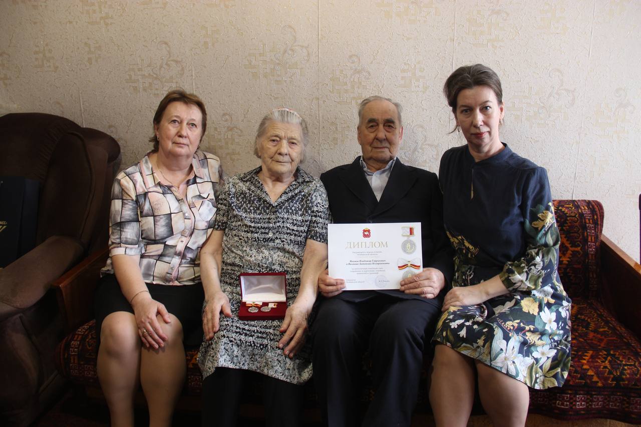 Якимовых Владимира Гавриловича и Антонину Илларионовну, проживших вместе 60 лет.Высокой награды супруги были удостоены от имени губернатора Челябинской области Алексея Текслера за многолетний брак и сохранение семейных ценностей.